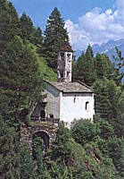 La Chiesa, di origine romanica, sorge fuori dal paese, sul sentiero che porta verso Vione, su un terrapieno a strapiombo da cui si gode un'ottima vista. A testimonianza dell'origine medievale resta il campanile a conci regolari e le doppie bifore disposte su tutti i quattro lati. L'edificio, ricostruito sull'impianto della Chiesa precedente, è del Cinquecento. Essendo dedicata a San Clemente, protettore dei pellegrini, si ipotizza che vi fosse presente un ospizio per i viandanti di cui esistono ancora alcuni resti.