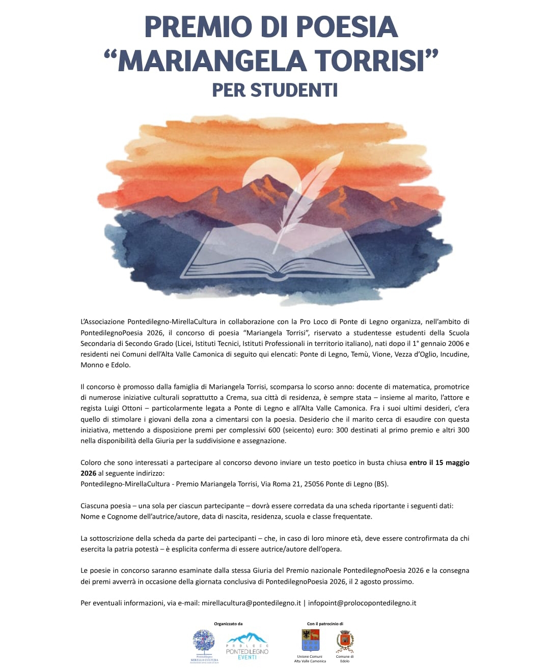 Premio di poesia per studenti "Mariangela Torrisi" dell'associazione Ponte di legno Mirella cultura